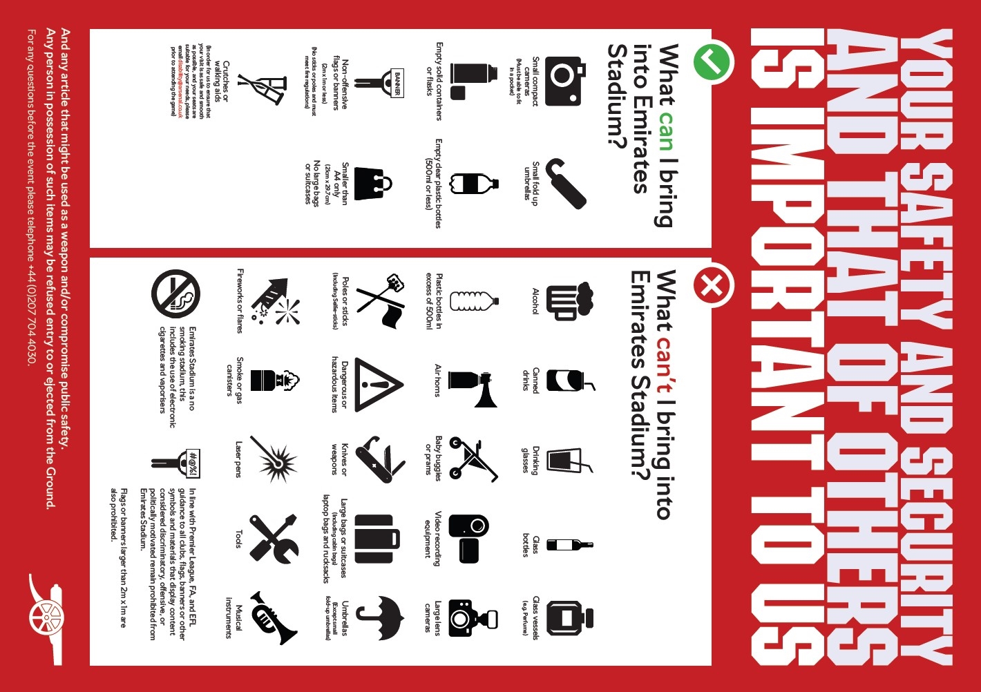 There are a number of items that fans are not able to bring in to Emirates Stadium to ensure the safety of our supporters.