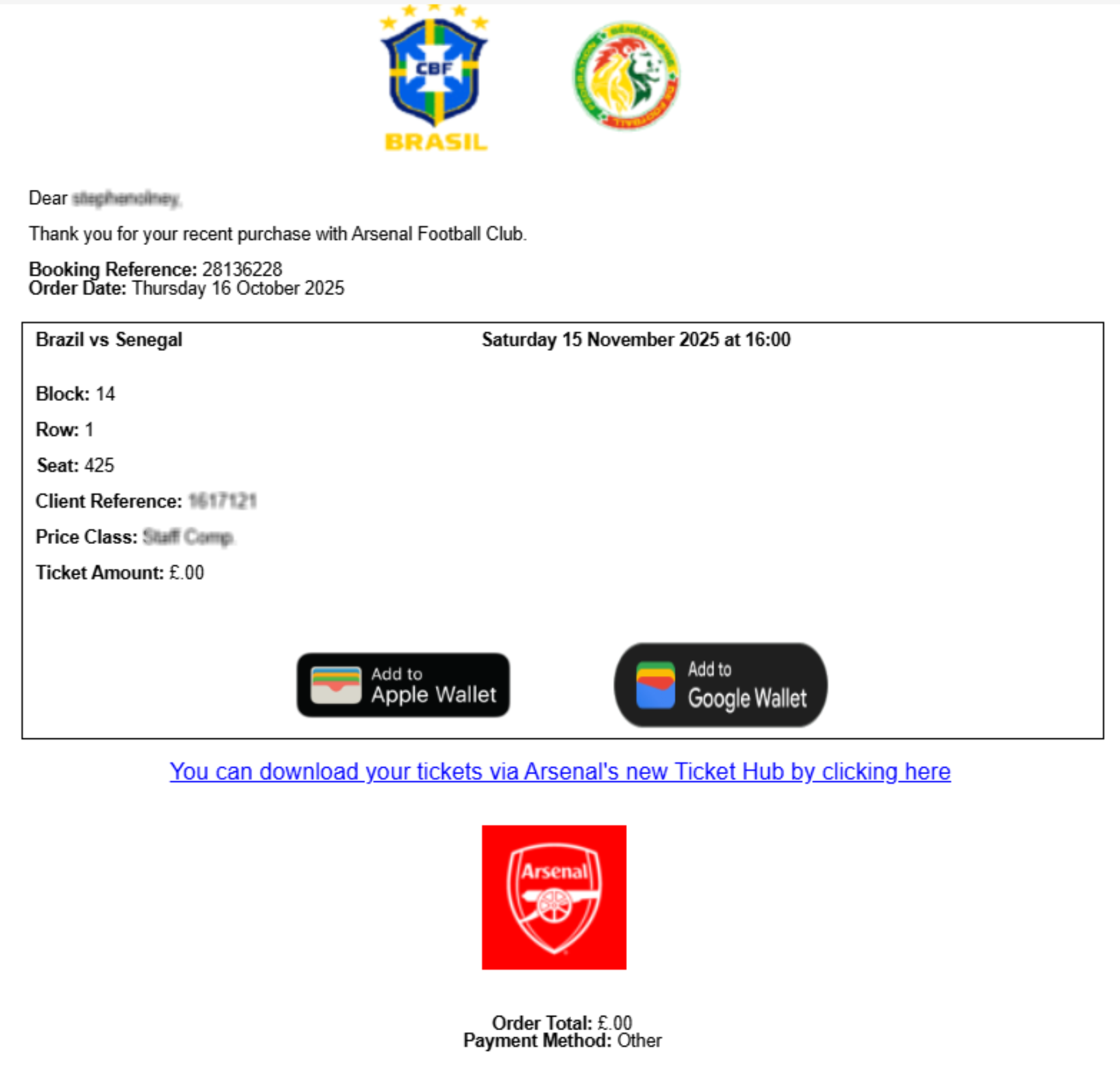 All tickets can be downloaded directly to your smartphone from your email confirmation, please see below an example.