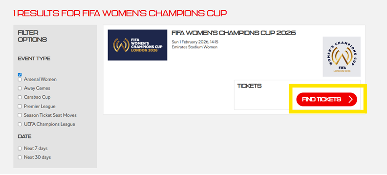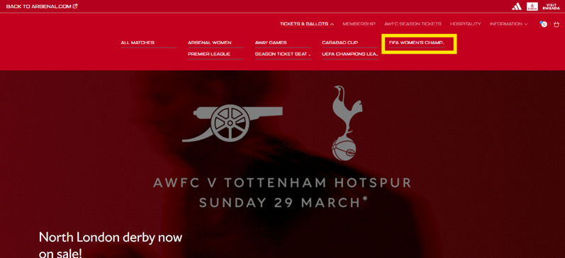 Once signed in, please click ‘tickets & ballots’ and head to ‘FIFA Women’s Champions Cup’