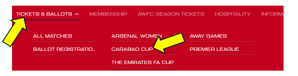 Once logged in, select Tickets & Ballot and then Carabao Cup