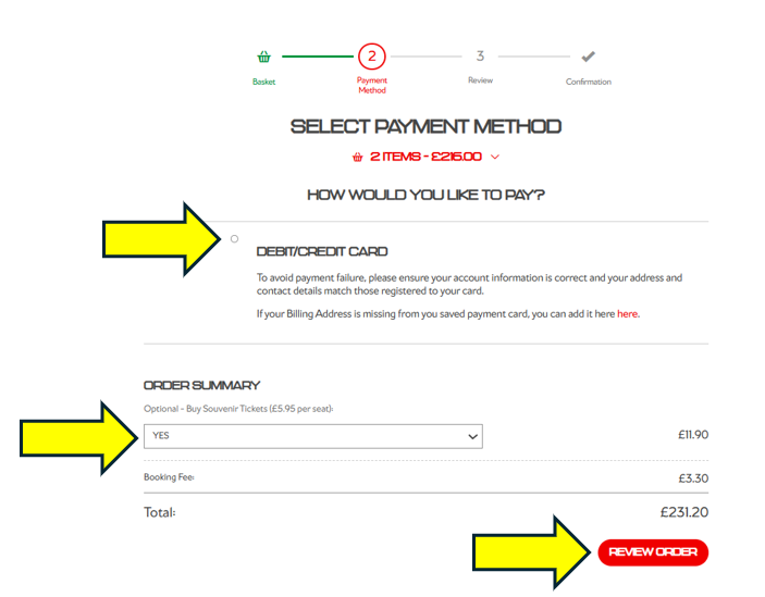 You can now submit your payment details and you have the option to purchase a souvenir ticket.