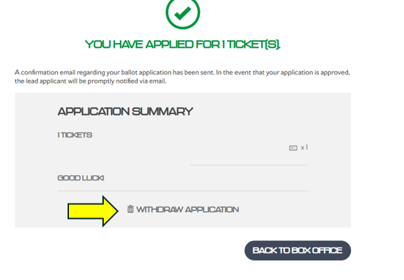 If you need to amend your application, you can only do so during the ballot registration window. Select Tickets & Ballot, then Ballot Registrations.