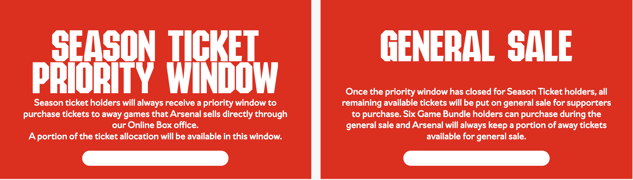 The allocation of tickets that Arsenal receive will be decided between Arsenal and the home club based on expected demand and the capacity of the away stadium. Full information on how many tickets Arsenal will receive for each game and when the matches will go on sale can be found here.