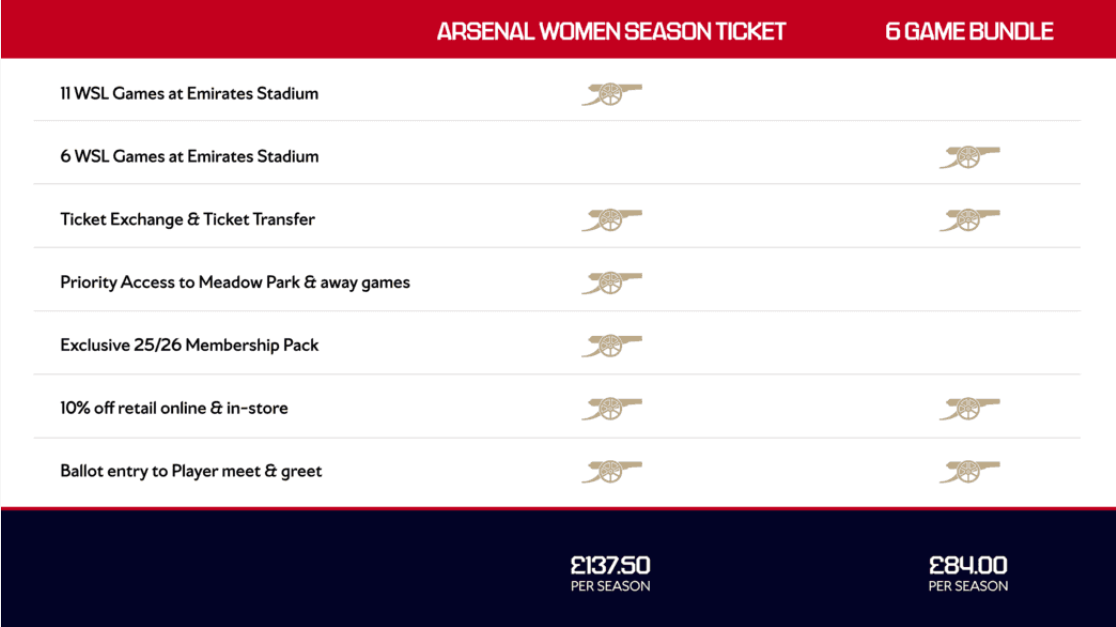 Our participation applies only to Emirates Stadium matches for our Barclays WSL fixtures.