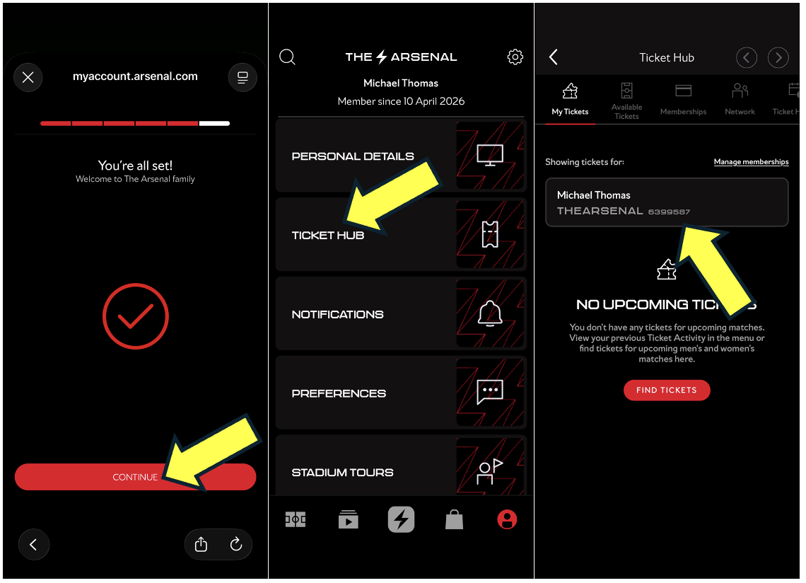 Step 1: If you’re not already logged in, visit www.eticketing.co.uk/arsenal and Log In to your account using the button in the top right-hand side of the screen.