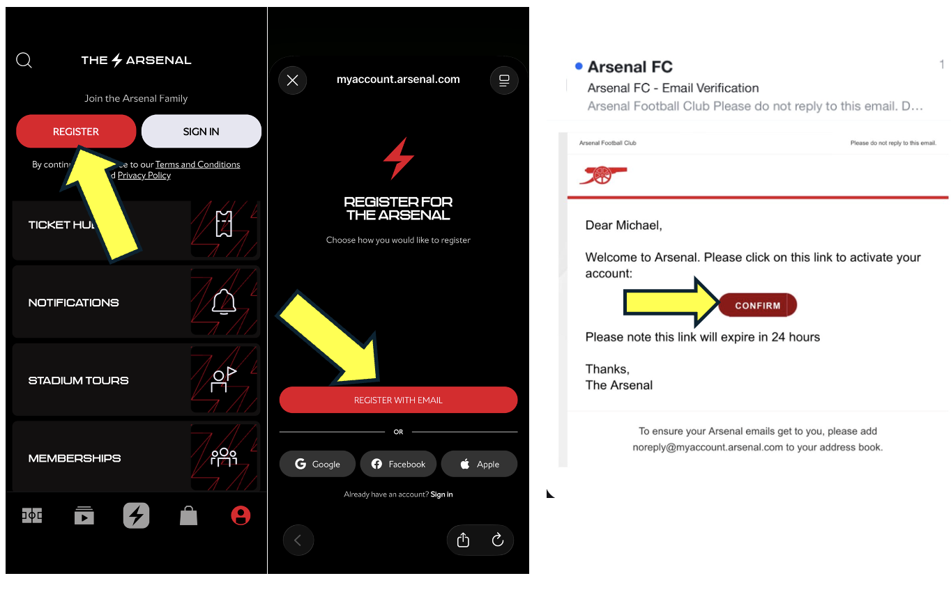 Step 1: To activate your membership, visit www.eticketing.co.uk/arsenal and click the Log In button in the top right-hand side of the screen.